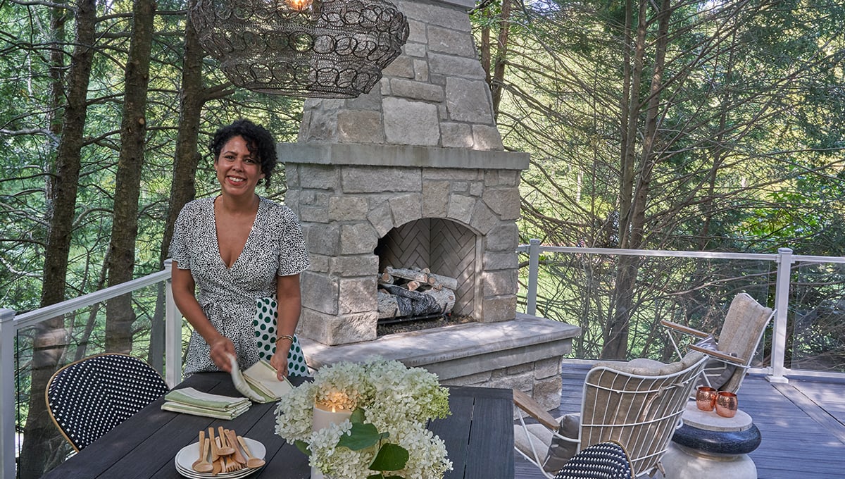 In 2014, TV celebrity, lifestyle influencer and culinary artist Evette Rios and her husband bought a stone house in the Pocono Mountains of Pennsylvania that was built in the late 1700s. Since then, the couple had planned to expand it— not by building an addition to the house, but by making an existing space livable year round. That space is the outdoor deck.