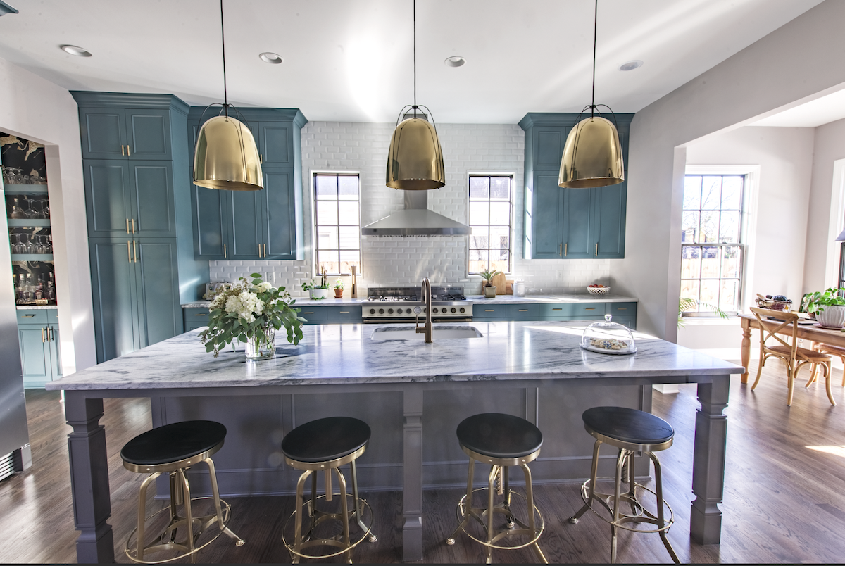 We are always honored when design professionals choose our stone for their own personal projects. We stumbled upon Atlanta interior designer Elisa Gangone’s home kitchen on Instagram and were immediately drawn in by the gorgeous combination of deep aqua cabinetry, brass accents and locally sourced American marble from our Tate, Georgia quarry.