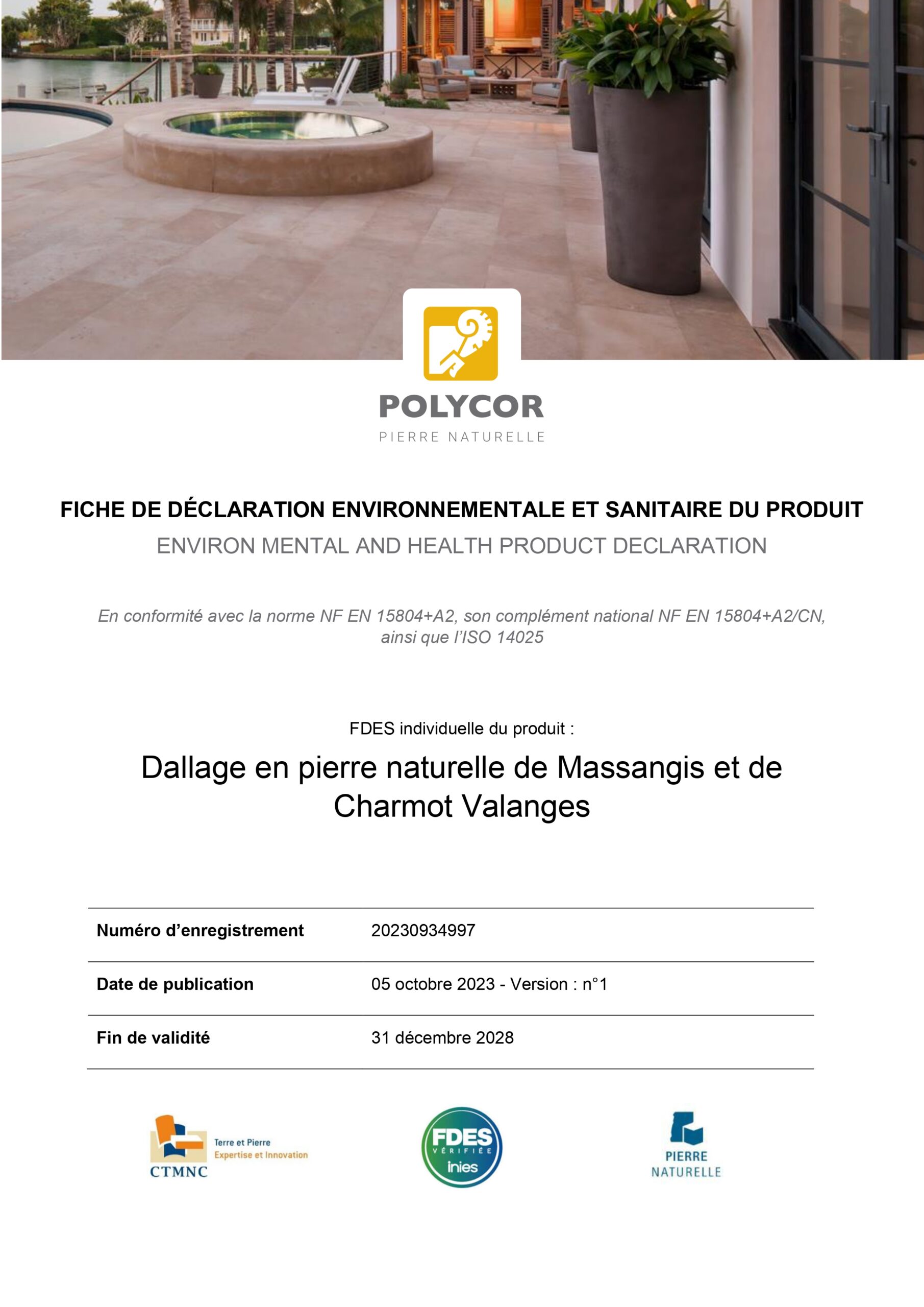EPD Dallage en pierre naturelle de Massangis et de Charmot Valanges