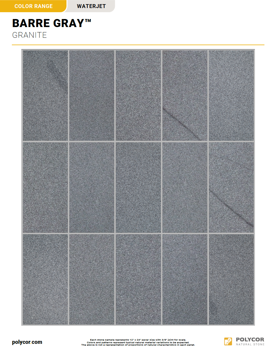 BARRE GRAY™ WATERJET Range Sheet